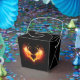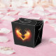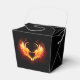 Engel Feuerherz mit flammenden Flügeln auf schwarzem Hintergrund.
