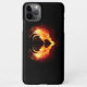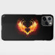 Engel Feuerherz mit flammenden Flügeln auf schwarzem Hintergrund.