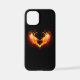 Engel Feuerherz mit flammenden Flügeln auf schwarzem Hintergrund.