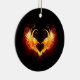 Engel Feuerherz mit flammenden Flügeln auf schwarzem Hintergrund.