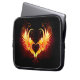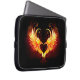Engel Feuerherz mit flammenden Flügeln auf schwarzem Hintergrund.