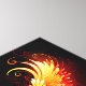 Engel Feuerherz mit flammenden Flügeln auf schwarzem Hintergrund.