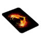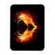 Engel Feuerherz mit flammenden Flügeln auf schwarzem Hintergrund.