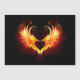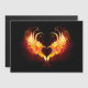 Engel Feuerherz mit flammenden Flügeln auf schwarzem Hintergrund.