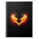 Engel Feuerherz mit flammenden Flügeln auf schwarzem Hintergrund.