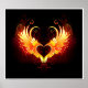 Engel Feuerherz mit flammenden Flügeln auf schwarzem Hintergrund.