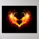 Engel Feuerherz mit flammenden Flügeln auf schwarzem Hintergrund.
