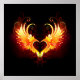 Engel Feuerherz mit flammenden Flügeln auf schwarzem Hintergrund.
