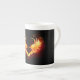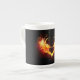 Engel Feuerherz mit flammenden Flügeln auf schwarzem Hintergrund.