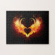 Engel Feuerherz mit flammenden Flügeln auf schwarzem Hintergrund.