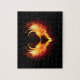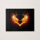 Engel Feuerherz mit flammenden Flügeln auf schwarzem Hintergrund.