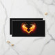 Engel Feuerherz mit flammenden Flügeln auf schwarzem Hintergrund.