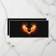 Engel Feuerherz mit flammenden Flügeln auf schwarzem Hintergrund.