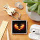 Engel Feuerherz mit flammenden Flügeln auf schwarzem Hintergrund.
