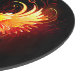 Engel Feuerherz mit flammenden Flügeln auf schwarzem Hintergrund.