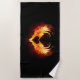 Engel Feuerherz mit flammenden Flügeln auf schwarzem Hintergrund.