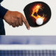 Engel Feuerherz mit flammenden Flügeln auf schwarzem Hintergrund.
