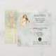 Eine Taufe für ein Mädchen. Ein Vintager Engel auf einem schäbigen Vintagen Texturhintergrund. Ein süßes Bild eines Engels, der mit Blume im Haar Geige spielt. Dieses Vintage-Bild sieht aus, verwittert und verblasst aus den Händen der Zeit, und hat einen abgenutzten gelblichen Ton. Der Hintergrund ist eine zarte, schimmernde Textur in Grauweiß mit einem Vintagen Stilpapier.