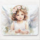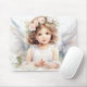 Wasserfarbenes Engelmädchen mit Blume auf weißem Hintergrund.
