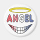 Das Engel-Design ist mit dem Wort "Engel" unten in einem Halo untergebracht. Darunter ist ein großes Grinsen, das sehr wohl angelikanisch sein kann oder vielleicht meistens. Ein lustiges und möglicherweise ironisches Engelbild.