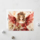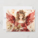 Ein Aquarellengel in einem roten Kleid mit roten Flügeln und Blume in ihren Haaren bedeckt die Vorderseite dieser flachen Grußkarte. Sehr niedlich und festlich!