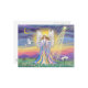 Ein schöner Engel mit einem Kleid aus pastellfarbenen Bändern segnet die Nacht als eine Taube in der Nähe und die Sonnenstrahlen füllen den Himmel.