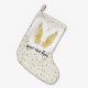 Der Strumpf ist mit Sternen und Engelsflügeln in Weiß und Gold dekoriert.