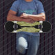 Maßgeschneidertes Skateboard mit goldenen Engelsflügeln.32,75 x 8,5 Deck