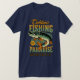 Dieser Vintage Stil hat einen Haufen, der aus dem Wasser sprang, und die Worte "Fishing Paradise". Fügen Sie einfach Ihren Staat hinzu, damit es Ihnen gehört.
