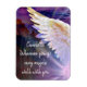 Bring peace, comfort, and divine energy into any space with this inspirational angel magnet featuring original art by Kristy McAdams. A soft, ethereal purple background highlights a large, elegant angel wing and the comforting words “Angels walk with you.” This design serves as a reminder of spiritual protection and loving presence—perfect for daily encouragement or as a heartfelt gift.