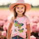 T - Shirt für Kinder mit handgemalten Schmetterlingsbildern. Fügen Sie auch den ersten Namen des Kindes hinzu. Auf einem hellrosa Tee mit mehr Farben dargestellt. Ideal für den Kleinen, der die Natur Liebe, im Garten ist und Schmetterlinge jagt. Dieses Design wird auf andere Kleidung übertragen.