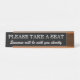 Dieses elegante Design beinhaltet neben der Nachricht "BITTE SITZ NEHMEN" auch die Nachricht "Jemand wird in Kürze bei dir sein". Dies kann in einer Sitzecke oder einem gewartet Salon verwendet werden, um Kunden, Kunden oder Patienten darüber zu informieren, dass sie in Kürze unterstützt werden und in der Zwischenzeit einen Sitzplatz einnehmen sollten.