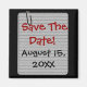 "Save the Date!" in fett rot und das fett gedruckte Datum in schwarzem Text auf einer Notiz auf einem gereiften Blatt Papier mit einer Büroklammer auf schwarzem Hintergrund. Ein lustiger, aber sehr praktischer Magnet, der sicher die perfekte Erinnerung für jeden sein wird. Einfach den Text in Ihren eigenen Worten anpassen und diesen besonderen Tag nicht vergessen! Sie können den Stil und die Farben des Schriftartes anpassen und die Hintergrundfarbe ändern, falls gewünscht! Ideal für Hochzeiten, Geburtstage, Jubiläen, Duschen, Wiedersehen, besondere Anlass. Vergiss nicht, das Datum retten!