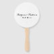 Angepasste Skriptnamen Datum und Foto Hochzeitshandfan. Schwarzweißkalligrafischer Text und weißer Hintergrund, auf der Rückseite können Sie anpassen, fügen Sie Ihr eigenes Foto, Bild.