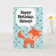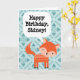 Diese hübsche Grußkarte aus unserer Woodland Whimsy Kollektion kann einfach mit dem Namen Ihres Empfängers und Ihrer Nachricht in der Karte personalisiert werden. Dieses Design hat einen niedlichen roten Fuchs in dunkelrötlich orange vor einem hellblauen gemusterten Hintergrund. Es macht eine tolle Kindergeburtskarte oder ändert den Text, um es für einen anderen Urlaub oder Anlass zu verwenden.