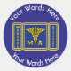 Dieser individuelle Aufkleber ist mit einem medizinischen Assistant-Schild dekoriert, das mit einer Wortwahl über und unter angepasst werden kann, mit der Sie ihn mit dem Namen einer Person, eines Ortes, einer Position usw. personalisieren können.