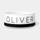 Minimalistisch Stripe Custom Printed Keramik Dog Bowl für Essen oder Wasser hat den eigenen Namen Ihres Welpen und einen schlichten Rahmen unten in Schwarz und Weiß. Der dünne Schriftart passt zu allen Einrichtungsgegenständen.