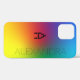 Sie werden dieses dynamische und trendige Design auf einer ungewöhnlichen Regenbogenkomposition für Ihr iPhone 12 Gehäuse Liebe. Der Hintergrund des Regenbogens hat sechs Farben (rot, orange, gelb, grün, blau, lila). Auf der rechten Seite finden Sie ein benutzerdefinierbares Name-Set und auf der links ein modifizierbares Initial. Der Name ist in einem stylischen, schwarz gepunkteten Schriftart geschrieben. Der erste ist in einem eleganten, schwarz gepunkteten Schriftart mit größeren Punkten bedruckt. Sie können es durch Ihre Monogramm-Initialen (1 oder 2 Buchstaben) oder durch ein beliebiges 4-Buchstaben-Wort ersetzen. Verwenden Sie nur die HAUPTSTADT LETTERS, um ein optimales Ergebnis zu erzielen. Bitte ändern Sie die anpassbaren Felder nach Belieben oder löschen Sie sie. Dieses Design ist LGBTQ+ freundlich.