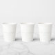 Personalisierter, benutzerdefinierter Skripttext Couple Name and Date Wedding Paper Cups Elegantes, klassisches, minimalistisches Design. Blassgrauer Text, weißer Hintergrund.