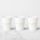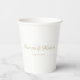 Personalisierter, benutzerdefinierter Text Couple Name and Date Wedding Paper Cups Elegantes, klassisches, minimalistisches Design. Gold Text, weißer Hintergrund.