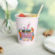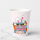 Feiern Sie Ostern mit einer angesagten Drehung! Dieser lustige Retro-Papierbecher verfügt über eine alte Kassette mit dem Titel "Angesagt-Hop" neben einem niedlichen Hasen, einer Karotte und bunten Ostereiern. Ideal für Musikliebhaber, Kinder der 90er Jahre und alle, die ein nostalgisches Osterlebnis genießen!