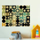 Schöne zeitgenössische schwarz, dunkelbraun, grau, beige taupe, aquamarin, olivgrün, und echtes goldfarbene folie farbige geometrische Kreise und Halbkreise Muster auf einem knusprigen weißen Hintergrund. Elegantes, stilvolles und eklektisches minimalistisches Design für den künstlerischen Innenarchitekten, den künstlerischen Dekorator, den beliebten angesagten Trendsetter, den Vintagen Retro-Stil oder den abstrakten geometrischen Motiv-Liebhaber. Entdecken Sie dieses Design mit den Farben der Innendekoration und dekorieren Sie Ihre Wand mit etwas Exklusivem und Einzigartiges an Ihrer Wand!