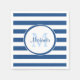 Angesagte Papierservietten mit blauen und weißen Streifen. Personalisieren Sie dieses einfache Muster, indem Sie den Namen und die mit Monogramm Initiale des Party hinzufügen. Dieses lässige Monogramm-Design ist Teil der Classic Blue Stripes Party Essentials Summer Color Collection.