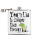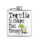 TEQUILA IST BILLIGER ALS THERAPIE. Ein Schuss von Tequila mit einer Scheibe von Limonem und Salz und das Sprichwort, "Tequila ist billiger als Therapie". Cocktail-Spaß.
