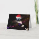 Fun-Karte mit einer angesagten Santa Katze mit seiner Gitarre im Hintergrund und einem Akzent von bunten Noten. Personalisieren Sie die Nachricht, um Ihre eigenen Weihnachtsgrüße zu machen. Freundliches Foto von Marek mit der Gitarre. Lizenzierte Grafiken.