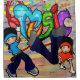 Duschvorhang entwarf für angesagtes Hopfen, oder Breakdancekinder mit einem Graffiti ummauern Hintergrund, der die MUSIK hat, die auf ihm gemalt wird.