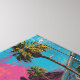 Zeitgenössische Straßenkunst, die Los Angeles angesagt-Hop-Kultur feiert, mit Breakdancer-Silhouette gegen City-Skyline. Hervorragender HIP-HOP-Text, Vintage Boombox-Grafiken, Palmen und Gebäude in der Innenstadt von LA, die gegen eine große gelbe Sonne versilbert sind. Kombiniert Graffiti-Ästhetik mit Retro-80er und urbanen Kulturbildern der 90er Jahre in fett rosa, blau und gelb Farbpalette.