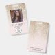ID-Abzeichen mit einem schicken Skript, einer modernen Schrift und einem Golden Glitzer-Effekt. Fügen Sie dem Abzeichen Ihr Logo und das Foto des Mitarbeiters hinzu.