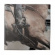 Ein künstlerisches Foto in gedämpfter Farbe zeigt ein Pferd, das angetrieben erhält, während er ein Fass rundet.