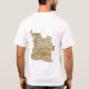 Ein editierbarer Titel und Slogan begleiten das gelbe Motiv über die rot-schwarzen Bänder der angolanischen Flagge auf der Vorderseite dieses T - Shirt. Die Rückseite zeigt eine detaillierte Karte von Angola.